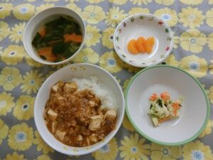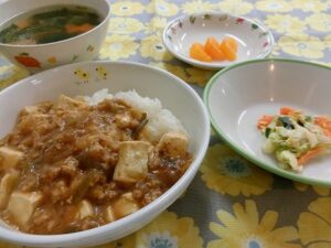 ~今日のお給食~ ・マーボー豆腐丼 ・もやしの中華サラダ ・味噌汁(キャベツ・えのきたけ・にんじん) ・みかん ~今日のおやつ~ ・麦茶 ・ヨーグルト ・ビスケット Share this post Share on FacebookShare on Facebook Share on XShare on X Post navigationPreviousPrevious post:6月7日(水)NextNext post:6月9日関連記事12月9日2025年12月9日12月5日2025年12月5日12月4日2025年12月4日11月28日2025年11月28日11月27日2025年11月27日11月26日2025年11月26日