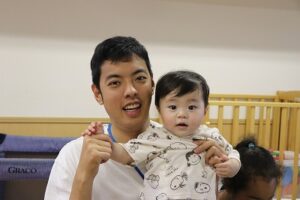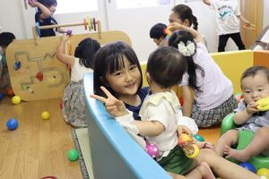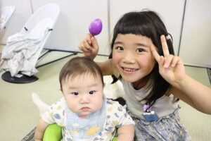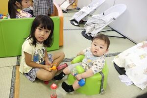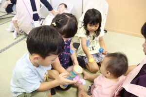 みんなでおもちゃを渡してあげたり、向き合って話しかけたり