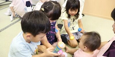 みんなでおもちゃを渡してあげたり、向き合って話しかけたり