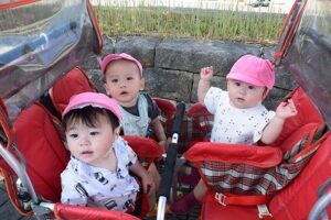先生たちが葉っぱを握らせてくれたり、お花を見せてくれて自然物にも興味津々です。