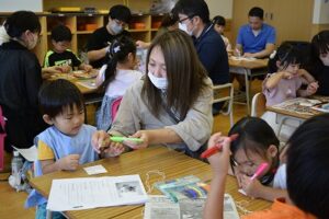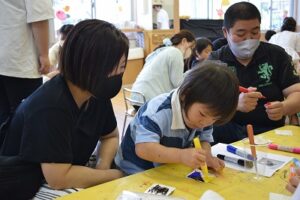 どんな模様にするか考えながら、色を塗ったり絵を描いたりしていました!