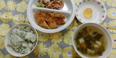 ~今日のお給食~ ・サクサクチキン ・あおさごはん ・キャベツとひじきの和風和え ・味噌汁(にんじん・こまつな・とうふ・油揚げ) ・ミニゼリー ~今日のおやつ~ ・じゃがおやき ・牛乳 Share this post Share on FacebookShare on Facebook Share on XShare on X Post navigationPreviousPrevious post:6月21日(水)NextNext post:6月23日関連記事12月4日2025年12月4日11月28日2025年11月28日11月27日2025年11月27日11月26日2025年11月26日11月25日2025年11月25日11月21日2025年11月21日