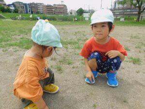 保育部さん、幼稚部さんでお散歩に行き、広場でも楽しく友達と