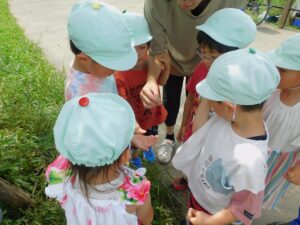 保育者が捕まえるとみんなで観察をしていました