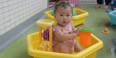 水にも玩具に興味津々で、そーっと触ってみる子もいれば