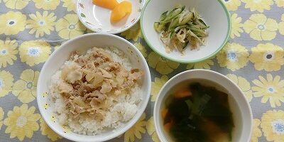 ~今日のお給食~ ・豚丼 ・きゅうりのサラダ ・わかめスープ ・モモ ~今日のおやつ~ ・おかかおにぎり ・牛乳 Share this post Share on FacebookShare on Facebook Share on XShare on X Post navigationPreviousPrevious post:7月6日 七夕メニューNextNext post:7月7日(金)関連記事12月4日2025年12月4日11月28日2025年11月28日11月27日2025年11月27日11月26日2025年11月26日11月25日2025年11月25日11月21日2025年11月21日