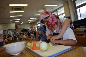 野菜を切る、フルーチェ作りなど各クラスに分かれて取り組むことを
