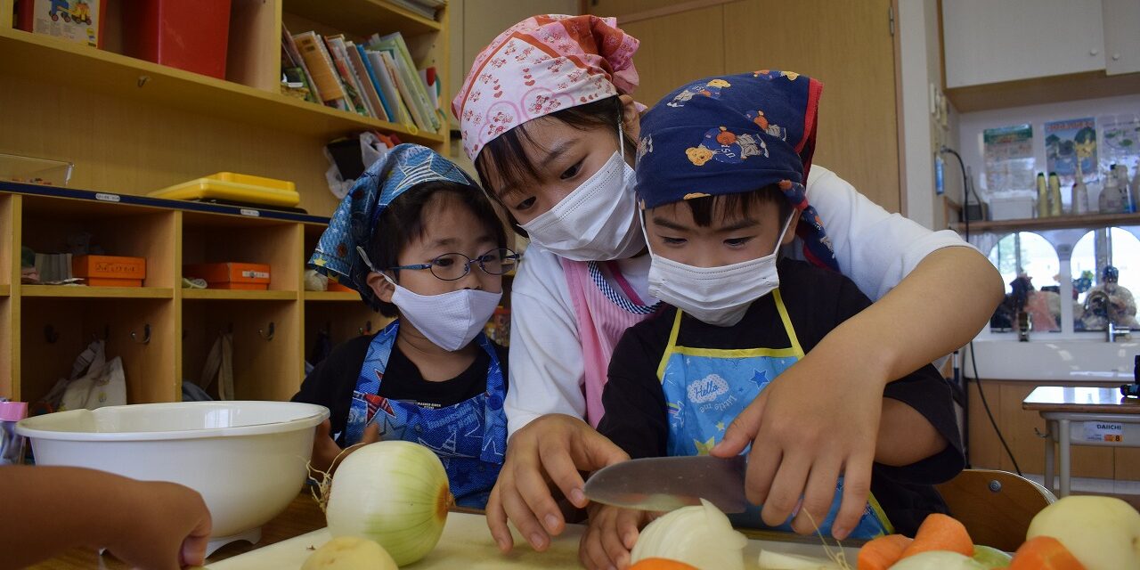 作る過程の中で、子ども達は野菜を炒める匂いやカレーの匂いに誘われて「お腹がすいたー!」「はやくたべたーい!」