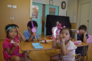 午後は、友達と玩具を使い遊びを楽しんでいました