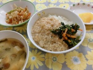 ~今日のお給食~ ・そぼろ丼 ・キャベツのおかか和え ・味噌汁(なめこ・とうふ・わかめ) ・モモ ~今日のおやつ~ ・とうもろこしおにぎり ・牛乳 Share this post Share on FacebookShare on Facebook Share on XShare on X Post navigationPreviousPrevious post:8月2日(水)NextNext post:8月3日(木)関連記事12月9日2025年12月9日12月5日2025年12月5日12月4日2025年12月4日11月28日2025年11月28日11月27日2025年11月27日11月26日2025年11月26日