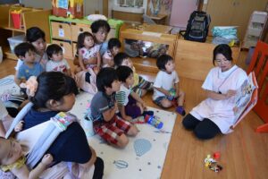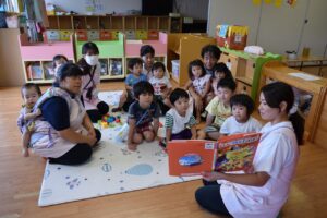 2階へ避難した際には皆で災害についての絵本の読み聞かせを行い