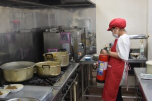 そして、その後には調理室からの火災という想定で初期消火を