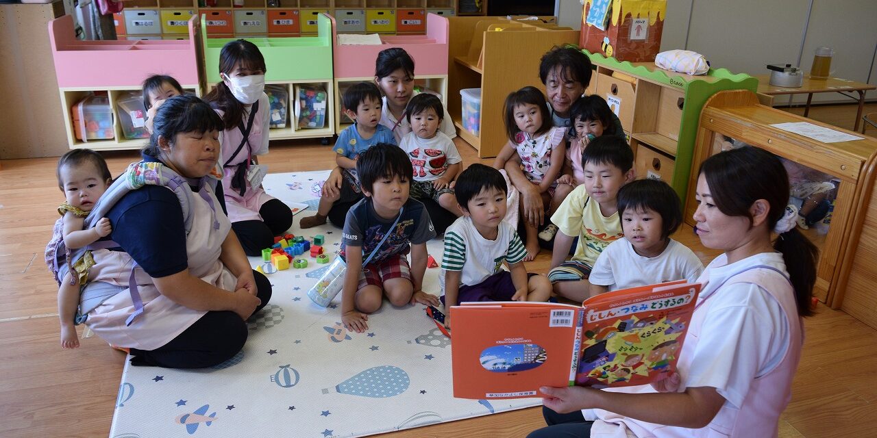 2階へ避難した際には皆で災害についての絵本の読み聞かせを行い