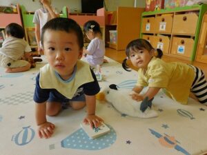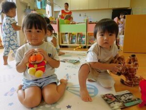 プール遊びが終わるとお部屋の中で、お人形や絵本を出して遊びました♩