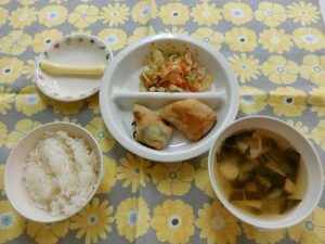 ~今日のお給食~ ・春巻き ・キャベツのおかか和え ・ごはん ・味噌汁(にんじん・油揚げ・こまつな) ・チーズ ~今日のおやつ~ ・そうめん ・豆乳 Share this post Share on FacebookShare on Facebook Share on XShare on X Post navigationPreviousPrevious post:8月9日(水)NextNext post:8月10日(木)関連記事12月9日2025年12月9日12月5日2025年12月5日12月4日2025年12月4日11月28日2025年11月28日11月27日2025年11月27日11月26日2025年11月26日