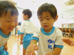 何やら床をピョンピョン飛び跳ねるものを子ども達が発見しました。