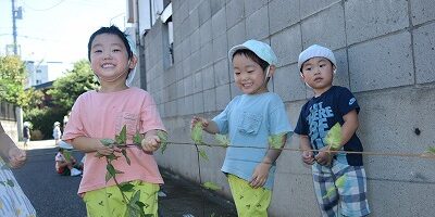長ーい葉っぱのツルを見つけて「うんとこしょ、どっこいしょ」と大きなカブごっこを楽しむ子もいました。