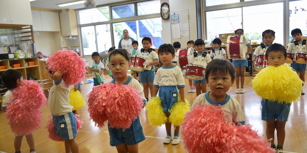 今日は、運動会のリハーサルを幼稚部の部屋で全クラスで取り組みました