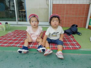 ラッコ組はテラスにシートを敷き外気浴をしました