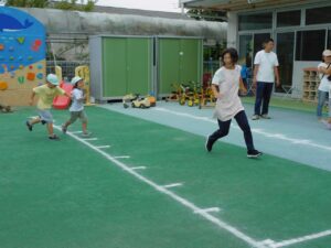 シャボン玉も飛ばし、飛んでいくシャボン玉を追いかけたり