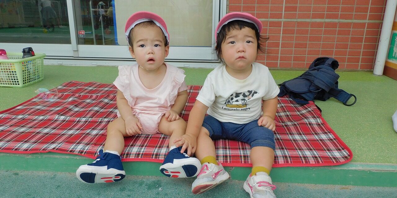 ラッコ組はテラスにシートを敷き外気浴をしました