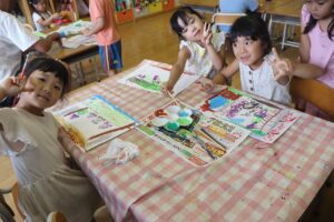 絵の具の色を自分たちで「何色を使おうかな?」と考えながら塗る姿が見られていました