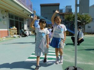 みんな上手に手を挙げて渡ることが出来ていました♩