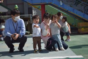 その後は園庭に移動し、実際に教わったことを思い出しながら