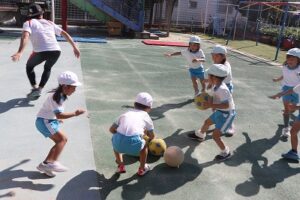 速く遠くに投げられる子も出て来て、さすが年長組!!と感心します。