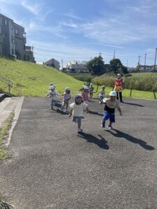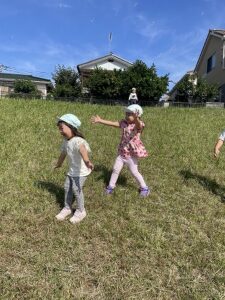 みんなでシャボン玉を追いかけたり、鬼ごっこをして遊びました。