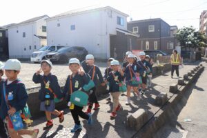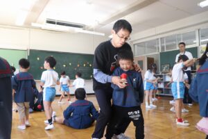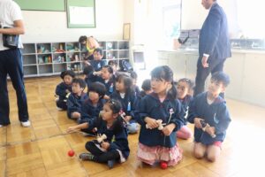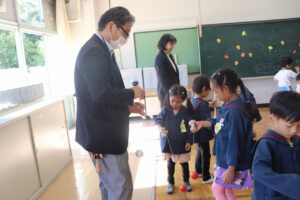 草加あおぞら保育園の5歳児と瀬崎小学校の校長先生