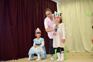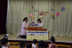 先生たちからの出し物はハロウィンにちなんだ絵本のペープサートです。