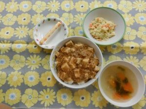 ~今日のお給食~ ・マーボー豆腐丼 ・鶏ささみのカレー風味サラダ ・春雨スープ ・チーズ ~今日のおやつ~ ・お誕生日ケーキ ・牛乳 Share this post Share on FacebookShare on Facebook Share on XShare on X Post navigationPreviousPrevious post:10月25日(水)NextNext post:10月26日(木)関連記事12月9日2025年12月9日12月5日2025年12月5日12月4日2025年12月4日11月28日2025年11月28日11月27日2025年11月27日11月26日2025年11月26日