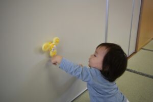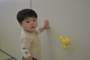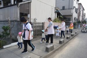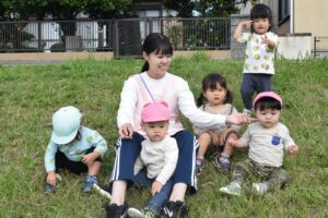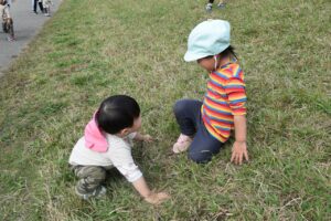 治水緑地まで先生と手をつなぎ、歩く様子もあり