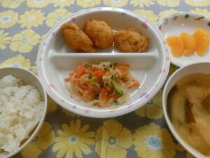 ~今日のお給食~ ・ツナと豆腐の落とし揚げ ・大根サラダ ・ごはん ・味噌汁(わかめ・もやし・油揚げ) ・みかん ~今日のおやつ~ ・焼き芋 ・牛乳 Share this post Share on FacebookShare on Facebook Share on XShare on X Post navigationPreviousPrevious post:10月31日(火)NextNext post:11月1日(水)関連記事12月9日2025年12月9日12月5日2025年12月5日12月4日2025年12月4日11月28日2025年11月28日11月27日2025年11月27日11月26日2025年11月26日