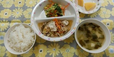 ~今日のお給食~ ・すき焼き風煮 ・ブロッコリーのサラダ ・ごはん ・味噌汁(こまつな・とうふ・たまねぎ) ・モモ ~今日のおやつ~ ・フライドポテト ・牛乳 Share this post Share on FacebookShare on Facebook Share on XShare on X Post navigationPreviousPrevious post:前の投稿NextNext post:11月14日(火)関連記事12月4日2025年12月4日11月28日2025年11月28日11月27日2025年11月27日11月26日2025年11月26日11月25日2025年11月25日11月21日2025年11月21日