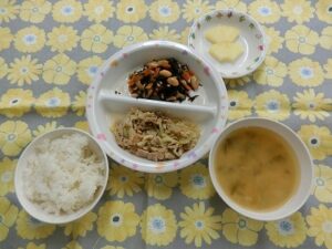 ~今日のお給食~ ・豚肉の生姜焼き ・ひじき煮 ・ごはん ・味噌汁(たまねぎ・じゃがいも・わかめ) ・パイン ~今日のおやつ~ ・お麩ラスク ・牛乳 Share this post Share on FacebookShare on Facebook Share on XShare on X Post navigationPreviousPrevious post:11月17日(金)NextNext post:11月18日(土)関連記事12月15日2025年12月15日12月9日2025年12月9日12月5日2025年12月5日12月4日2025年12月4日11月28日2025年11月28日11月27日2025年11月27日