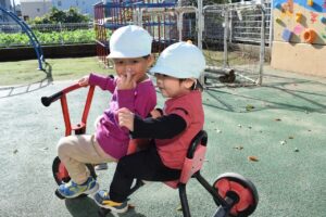 三輪車で遊ぶお友達は、順番を守り仲良く遊ぶことが出来ています!