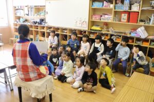 最後は、手作りのスケッチブックシアターを読んでもらい、とても興味津々で見ていました(*^-^*)