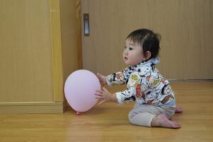 その他に風船を自分で飛ばして追いかける姿もあり