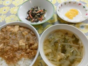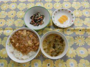 ~今日のお給食~ ・マーボー豆腐丼 ・キャベツとひじきの和風コールスロー ・味噌汁(こまつな・えのきたけ・もやし) ・みかん ~今日のおやつ~ ・ジャムサンド ・牛乳 Share this post Share on FacebookShare on Facebook Share on XShare on X Post navigationPreviousPrevious post:11月25日(土)NextNext post:11月27日(月)関連記事12月4日2025年12月4日11月28日2025年11月28日11月27日2025年11月27日11月26日2025年11月26日11月25日2025年11月25日11月21日2025年11月21日