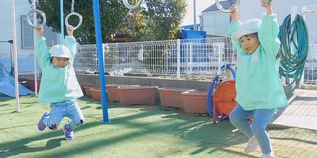 イルカ組のお友達は、吊り輪の遊具に挑戦です。