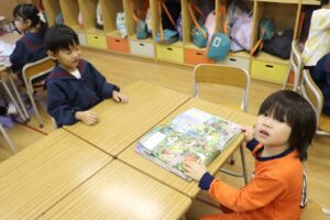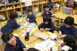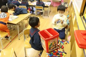 おやつ後は、ライオン組の保育室や廊下を掃除し
