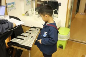 曲に合わせて自分たちのリズムを弾いたり、叩いたりし