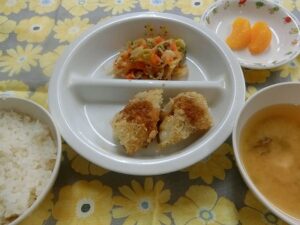 ~今日のお給食~ ・ちくわチーズフライ ・白菜のおかか和え ・ごはん ・味噌汁(わかめ・豆腐・なめこ) ・みかん ~今日のおやつ~ ・ビスケット ・おせんべい Share this post Share on FacebookShare on Facebook Share on XShare on X Post navigationPreviousPrevious post:12月14日(木)NextNext post:12月16日(土)関連記事12月9日2025年12月9日12月5日2025年12月5日12月4日2025年12月4日11月28日2025年11月28日11月27日2025年11月27日11月26日2025年11月26日