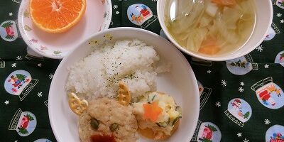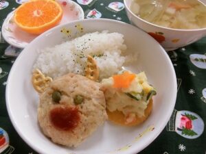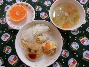 ~今日のお給食~ ・トナカイさんバーグ ・ポテサラツリー ・ごはん ・コンソメスープ(たまねぎ・にんじん・キャベツ) ・みかん ~今日のおやつ~ ・クリスマスパフェ ・牛乳 Share this post Share on FacebookShare on Facebook Share on XShare on X Post navigationPreviousPrevious post:12月19日(火)NextNext post:12月21日(木)関連記事12月4日2025年12月4日11月28日2025年11月28日11月27日2025年11月27日11月26日2025年11月26日11月25日2025年11月25日11月21日2025年11月21日