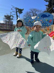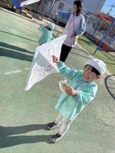 凧作りが終わり、園周りのお散歩にも行きました。