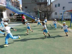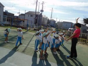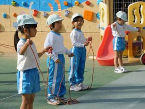 キリン組のお友達は縄跳びの練習を頑張っています。