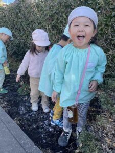 霜柱を踏んだ時の音や、感触を楽しんでいました。