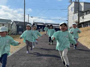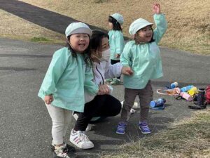 治水緑地に着いてからみんなでかけっこをしたら、あっという間に体もポカポカです。